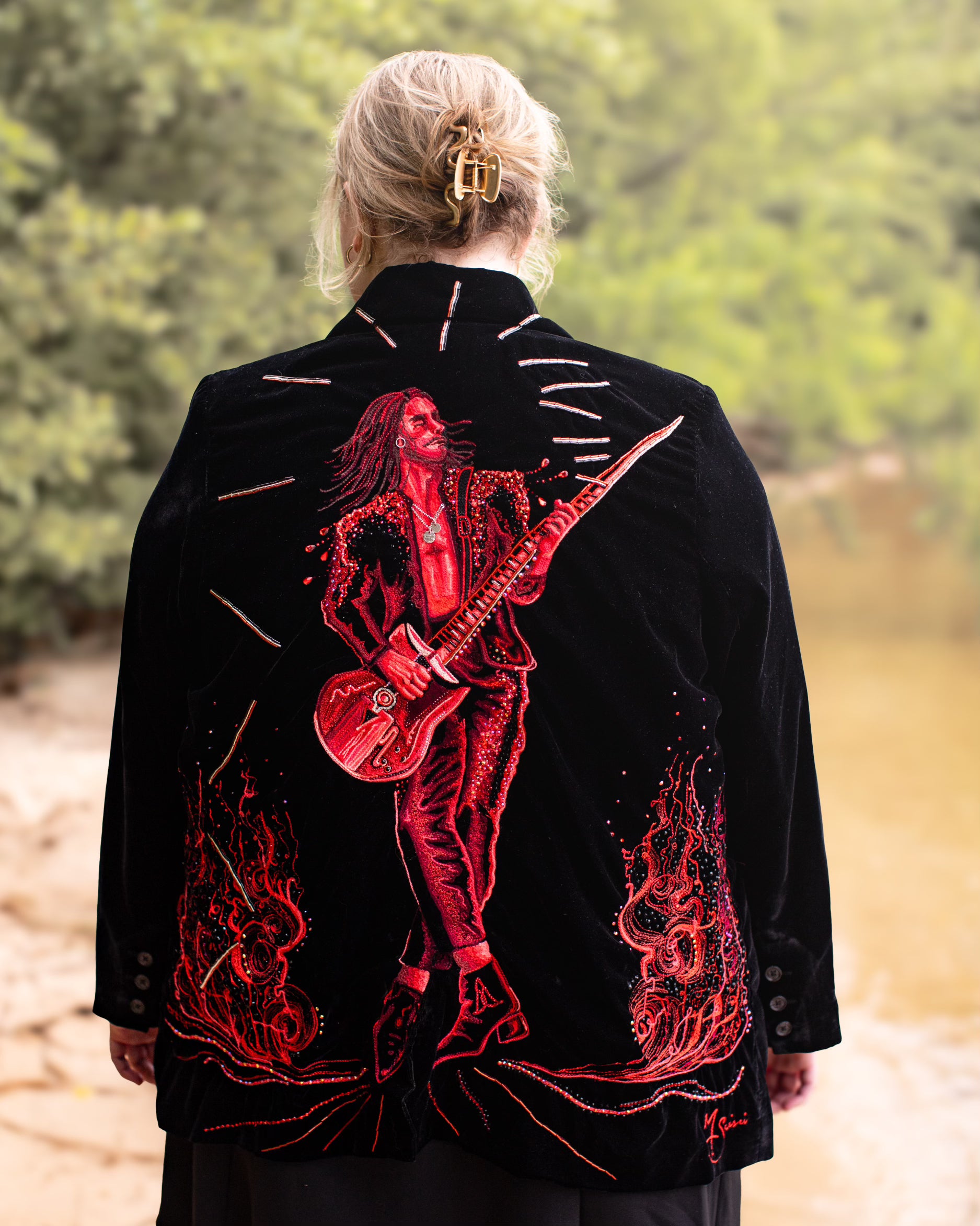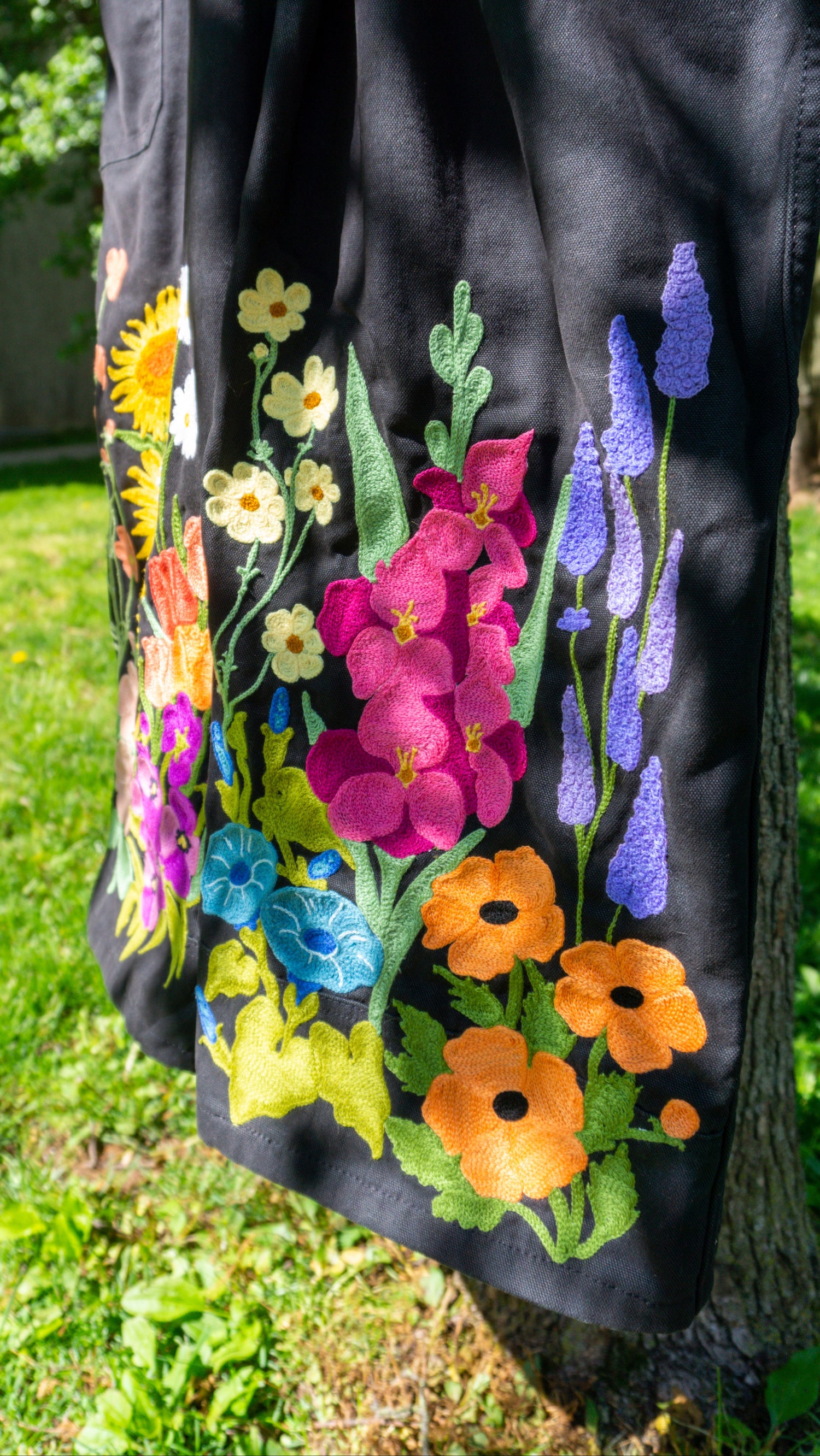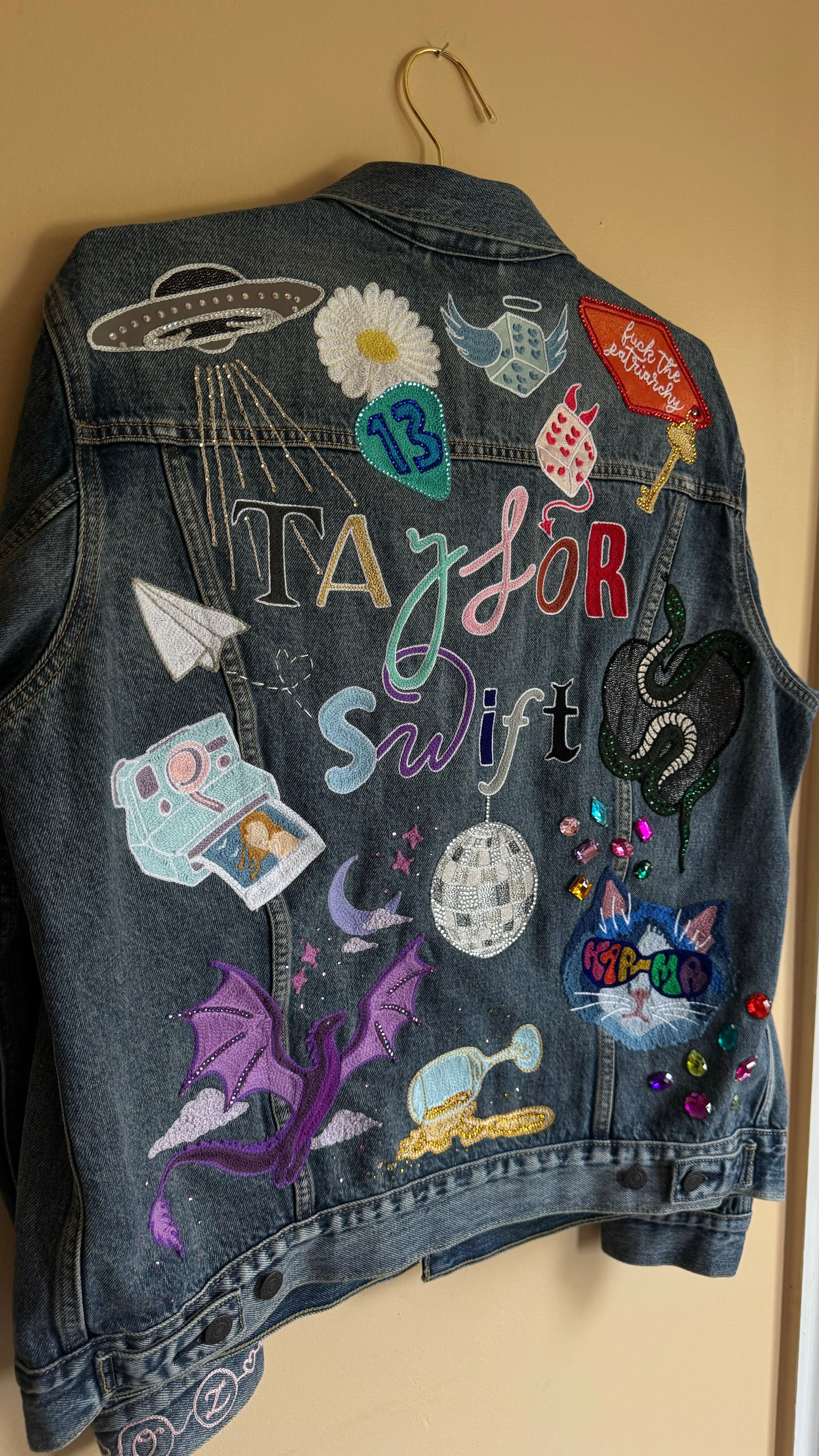 Send me your jacket or other item. Jackets must be 100% Cotton, non-stretch denim. I am happy to provide you with some jacket options. If I am stitching directly on the garment it is important that the item is 100% cotton and non-stretch to get the best final result! For patches and appliqués there is more flexibility. Just please send me photos of the garment before sending so I can ensure it will work!